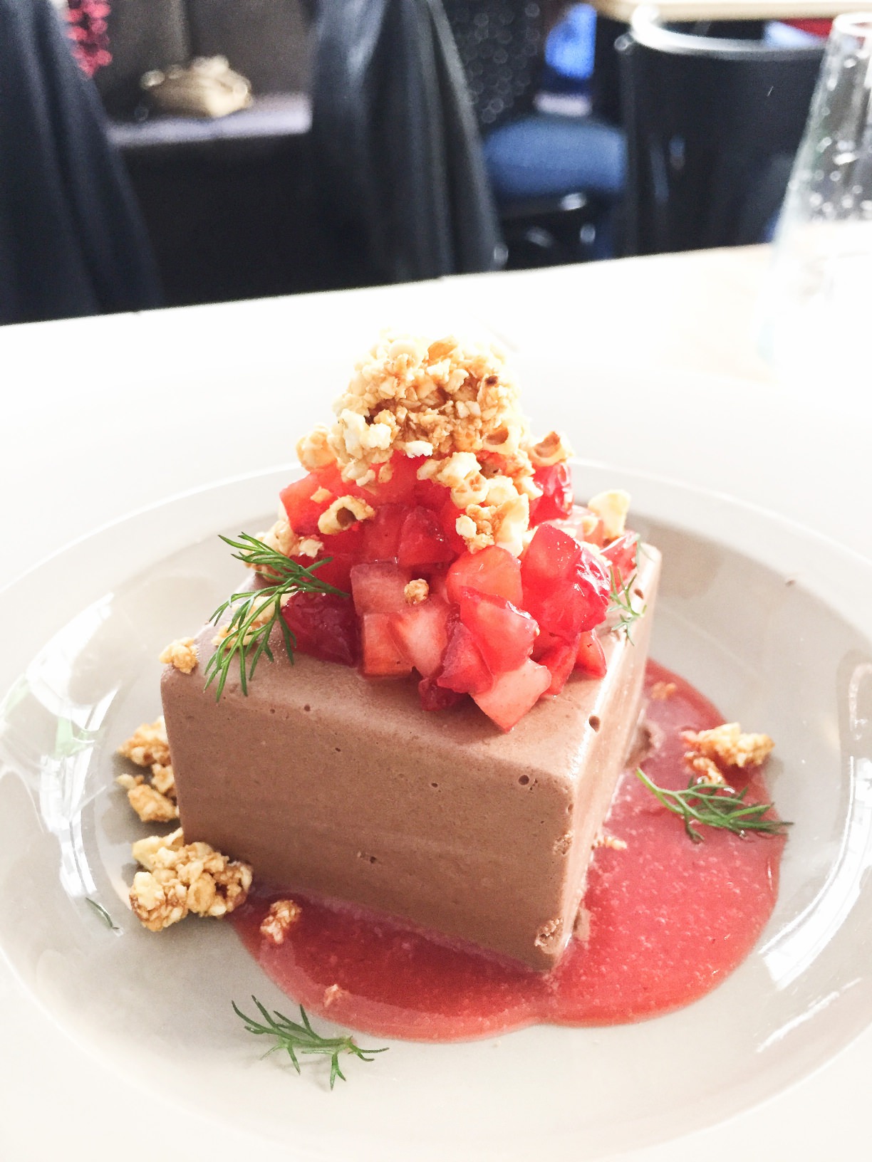 - Semifreddo al cioccolato, fragole e pop corn caramellati.