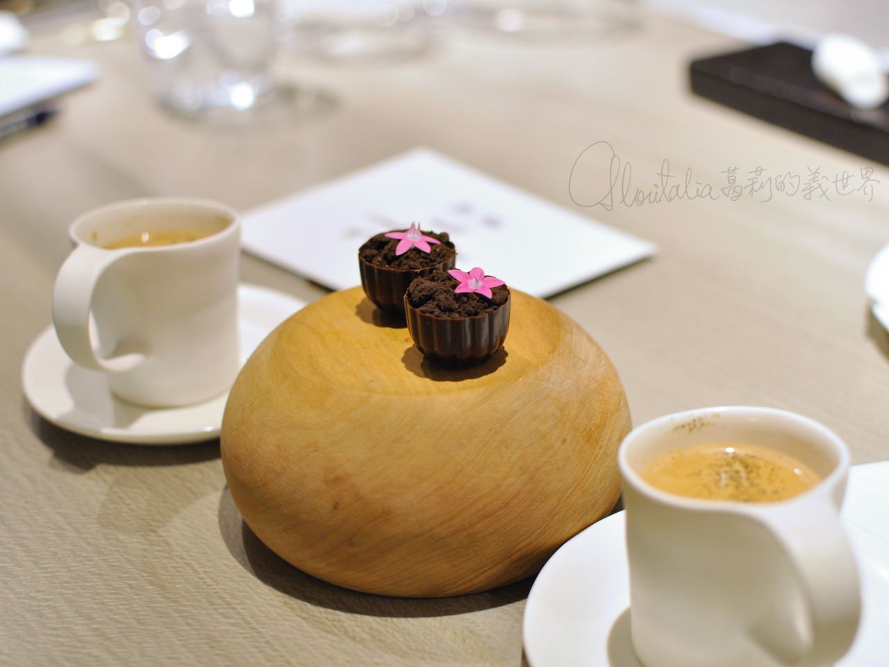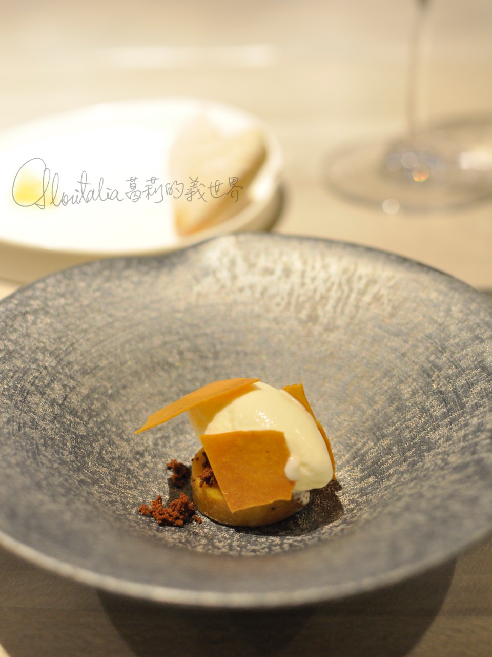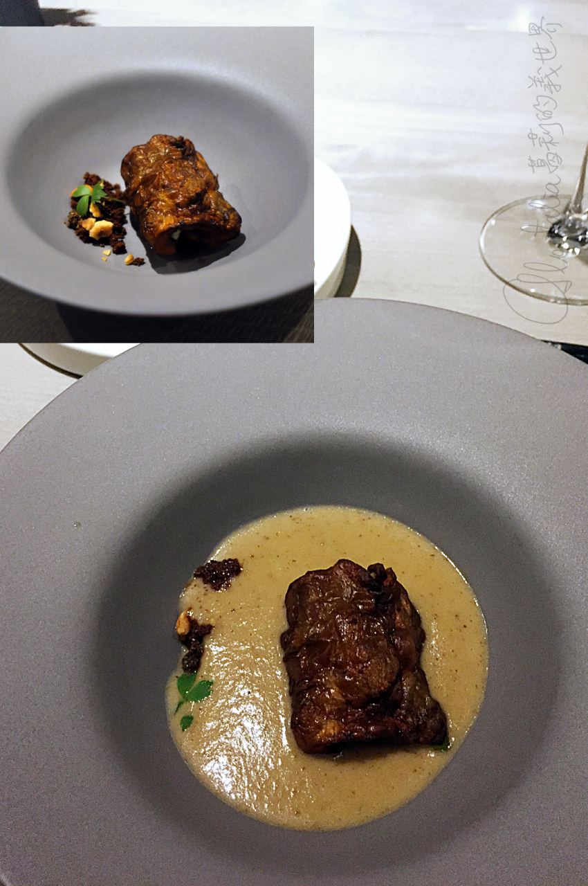 啊,甜點!先不說那個用米做的冰淇淋一口下去的米香,熱軟白巧克力布丁上的粉狀鵝肝,吃下瞬間從嘴裡散開的是小時候用湯匙吃奶粉的回憶,香濃的奶味中又鹹又甜的滋味,我心中的小女孩兒在跳舞!