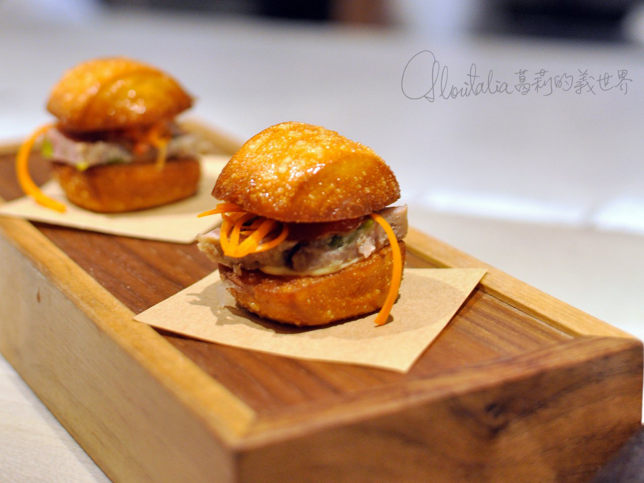 - fried steamed bun “bahn mi”, pate 偽裝成漢堡的肝醬炸銀絲卷